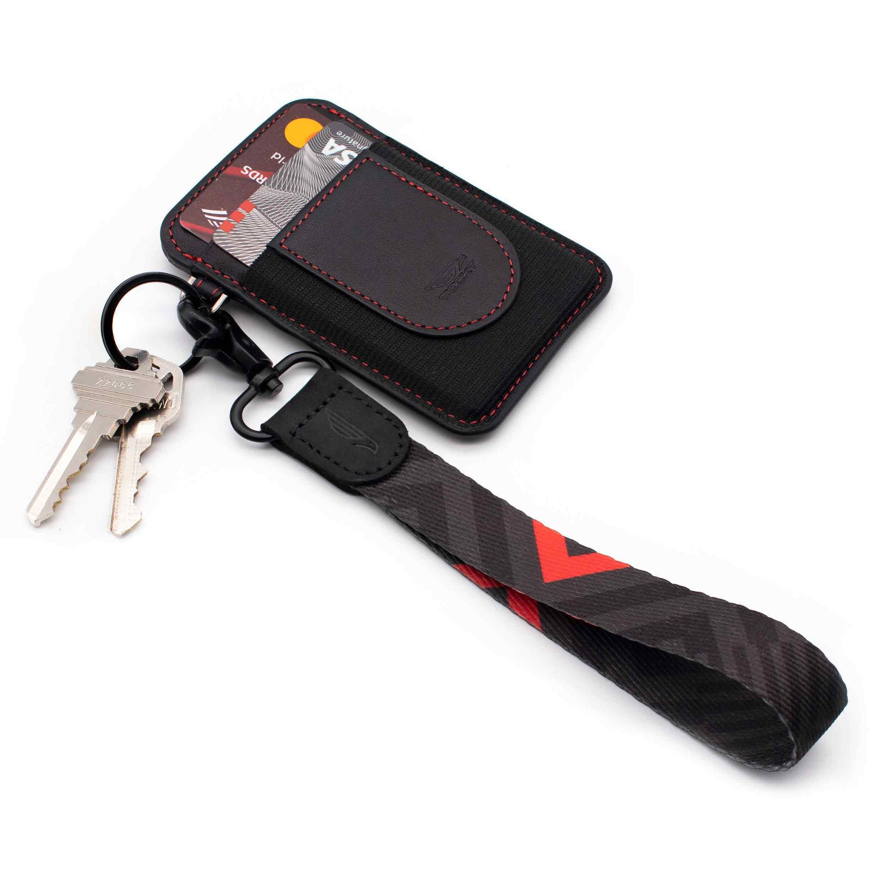 The POCKT® Wristlet Keychain is a compact, hands-free carry solution that wraps around your wrist and keeps your keys, card holder, and everyday essentials right at your fingertips. Made from soft polyester fabric with genuine leather hardware and a secure metal clasp, it's lightweight enough to wear all day and sturdy enough to handle daily use. The 2 included key rings attach easily to keys, car fobs, or any POCKT® card holder. Available in a wide range of unique patterns — practical, stylish, and a great gift for any occasion. Ships in a POCKT® branded gift envelope — no extra wrapping needed.