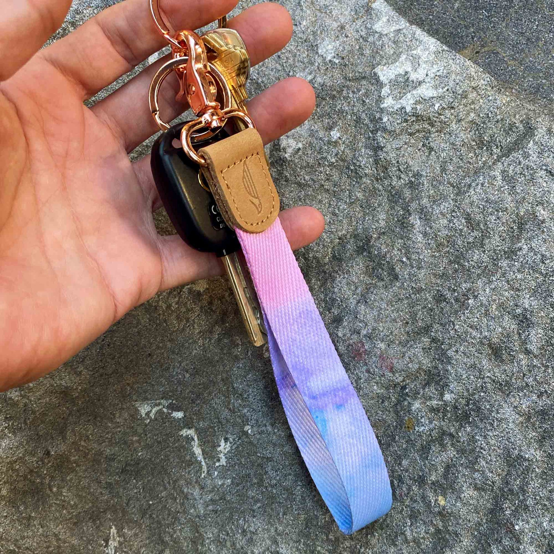 The POCKT® Wristlet Keychain is a compact, hands-free carry solution that wraps around your wrist and keeps your keys, card holder, and everyday essentials right at your fingertips. Made from soft polyester fabric with genuine leather hardware and a secure metal clasp, it's lightweight enough to wear all day and sturdy enough to handle daily use. The 2 included key rings attach easily to keys, car fobs, or any POCKT® card holder. Available in a wide range of unique patterns — practical, stylish, and a great gift for any occasion. Ships in a POCKT® branded gift envelope — no extra wrapping needed.